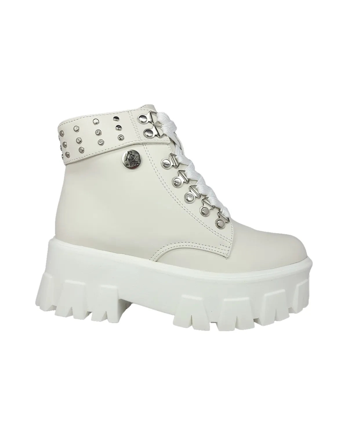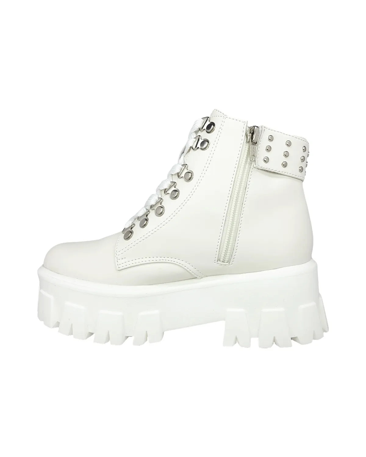 Los botines Lupe destacan por su diseño moderno con taches, brindando un toque de rebeldía a tu look. Su plataforma y suela plana garantizan estabilidad y confort durante todo el día.