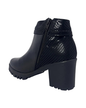 La cremallera lateral facilita el poner y quitar los botines, haciéndolos prácticos para el día a día. Además, su diseño con plataforma asegura un caminar más seguro y cómodo, perfecto para largas jornadas.