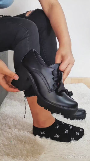 Botines Tacón y Plataforma Cinta Alba: Estilo y Comodidad en Color Negro